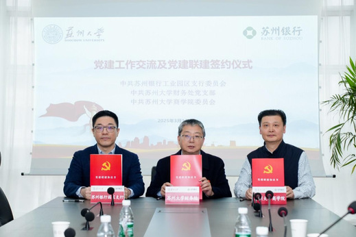 党组织相关情况,对苏州银行一直以来提供的优质金融服务表示肯定和感谢,希望以此次三方党建共建为契机,进一步拓宽合作平台和载体,发挥党员先锋模范作用,让更多的共建成果惠及更广大的师生群体,形成可复制推广的有效党建联建及业务合作模式。