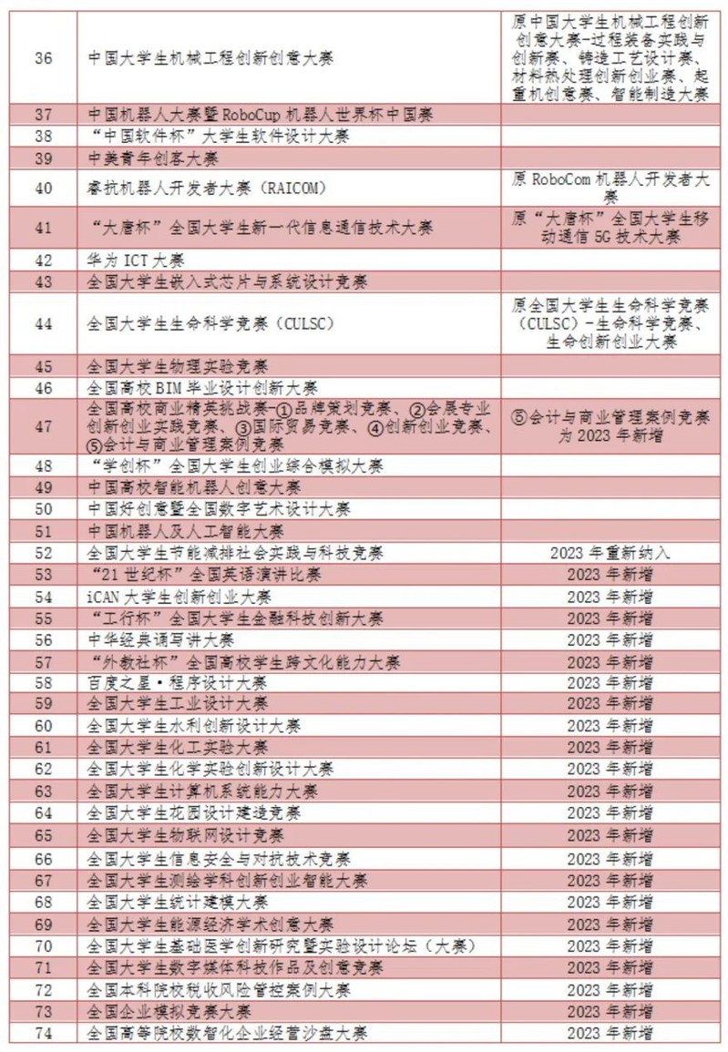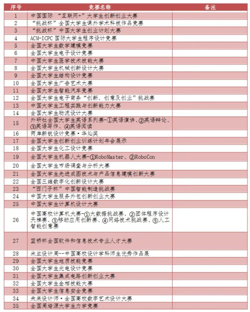 4、明年起,竞赛加分仅限于国家级榜单赛事、高数竞赛、英语竞赛和美国数学建模比赛,其他赛事不加分。