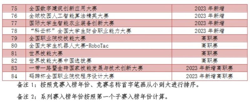 2023国家级榜单赛事(2024年不变)