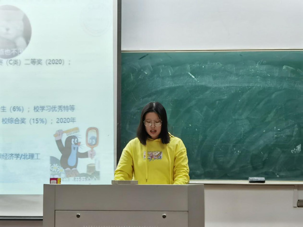 费一学姐为我们介绍了大学期间的一些有价值的学科竞赛,并且鼓励我们多多参与。