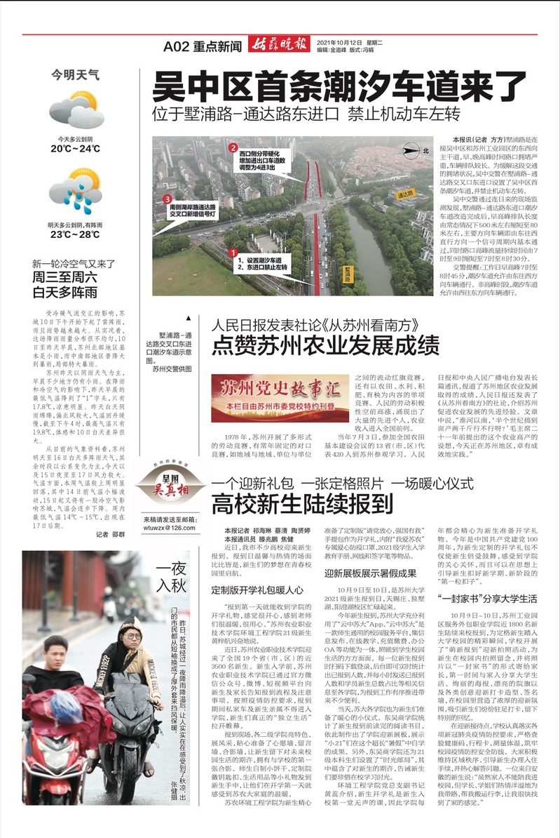 图为时光邮局、词云迎新板登上姑苏晚报纸媒