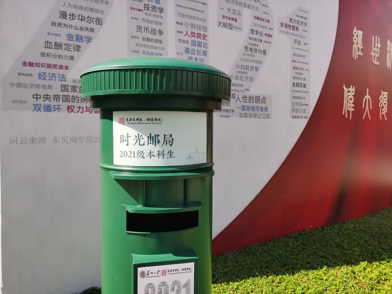 报到时,每位新生都领取到了一张盖有东吴成人小说 logo并且印有苏大光景的明信片。他们在明信片上写下对未来的期许,然后将明信片投入时光邮筒。他们以这样的方式珍藏一份初心,将自己的初心寄往2025年的自己。毕业的那天,明信片会重回他们手中,在那时,回看自己四年前报到当天写下的文字,意义非凡。