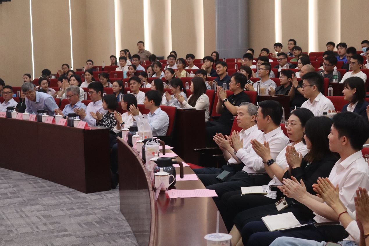 在主旨分享环节,我校2008级企业管理学博士校友、苏州银行股份有限公司党委书记、董事长崔庆军,从2025年诺贝尔经济学奖引入,谈到“经济本身是人文和科技的融合”,并启发大家思考人工智能为人类社会带来的机遇与挑战。结合自身与苏大结缘的成长经历,以及从银行业基层逐步成长为金融企业掌舵者的丰富职业历程,他为学弟学妹们带来了一场深度分享。他以苏州银行从艰难创办到蓬勃发展的历程为例,围绕其“科创+跨境、民生+财富”的核心竞争力,生动阐释了“苏心让您舒心”的服务理念,娓娓道来自己数十载金融生涯的思考与感悟。同学们凝神聆听,在崔董事长声情并茂的讲述中,对金融行业的创业脉络与发展逻辑有了更加具象而深刻的理解。分享尾声,崔庆军董事长勉励在场学子“行万里路,读万卷书”,做到读书与实践并重,活出精彩人生,并应在“品德、志向、能力、协同、领导力、健康”六个维度实现全面发展。