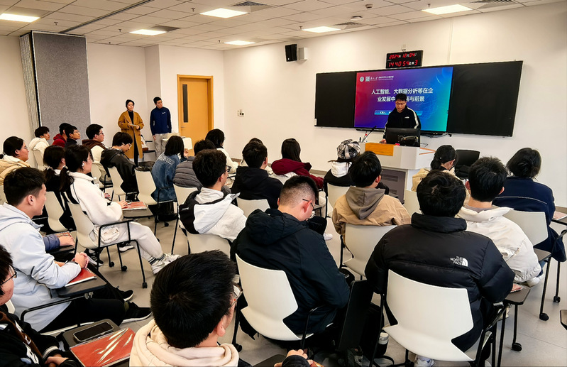 未来科学与工程学院陈亮老师围绕人工智能专业前沿理论和技术为同学们分享,重点介绍了人工智能、大数据分析等技术在社会企业发展中的应用与前景,鼓励同学们要将商科专业与人工智能相结合,提升专业学科素养与大局观念,将个人发展与国家经济与科学技术发展相融合。