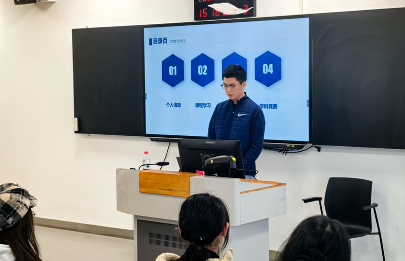 2021级人工智能专业朱辰宇同学分享了大学阶段的学习科研经历。他围绕个人成果、课程学习、目标规划以及学科竞赛四大板块,向同学们敞开了自己大学阶段的学习之旅,热情地分享了在英语、数学和编程这些核心课程上的学习心得与高效策略。希望学弟学妹们在未来的学习成长道路上不断前行、追求卓越。