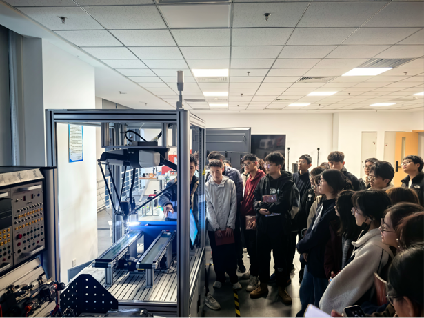 未来校区实验员老师向同学们展示了大学生优秀竞赛成果、创新创业项目和人工智能实验室。他向同学们介绍了人工智能分拣装置的基本原理和组成部分,通过机器实验展示了如何通过图形界面编程来控制机械臂的动作,同时还带领同学们参观了解了云计算机。同学们深入了解了智能化设备在校园中的实际运用,激发了他们对专业知识的探求欲和对未来职业生涯的憧憬。