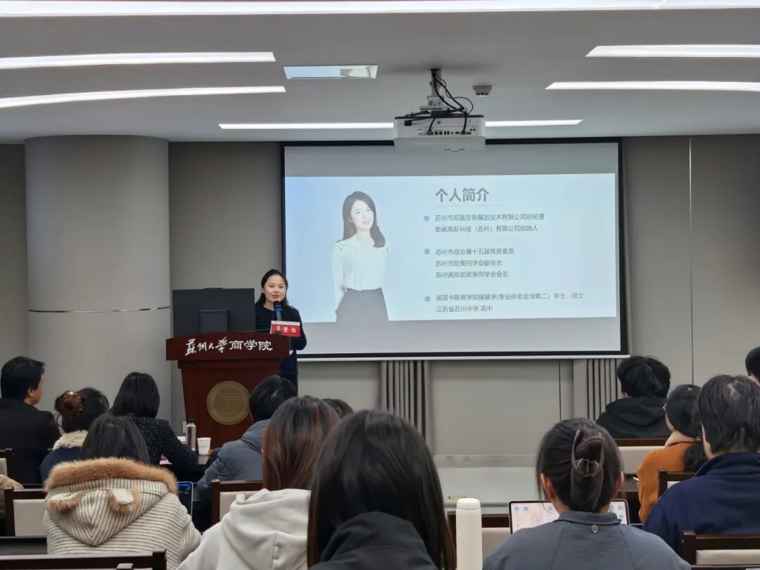 11月26日晚,成人小说 “信仰公开课”校级示范课在天赐庄校区财经科学馆215报告厅顺利举行。苏州市苏医生物基因技术有限公司总经理、影诺高新科技(苏州)有限公司创始人、苏州市政协第十五届常务委员、成人小说 高管校友、企业导师茅澄怡应邀授课,作题为《三代同心人,一条同心路》的主题讲座。成人小说 团委副书记徐娜,成人小说 党委副书记、副院长黄晓辉,成人小说 团委书记孙正嘉,成人小说 “青年马克思主义者培养工程”秋季班学员代表、成人小说 团员青年代表参与课程。课程由成人小说 团委指导老师胡强迪主持。