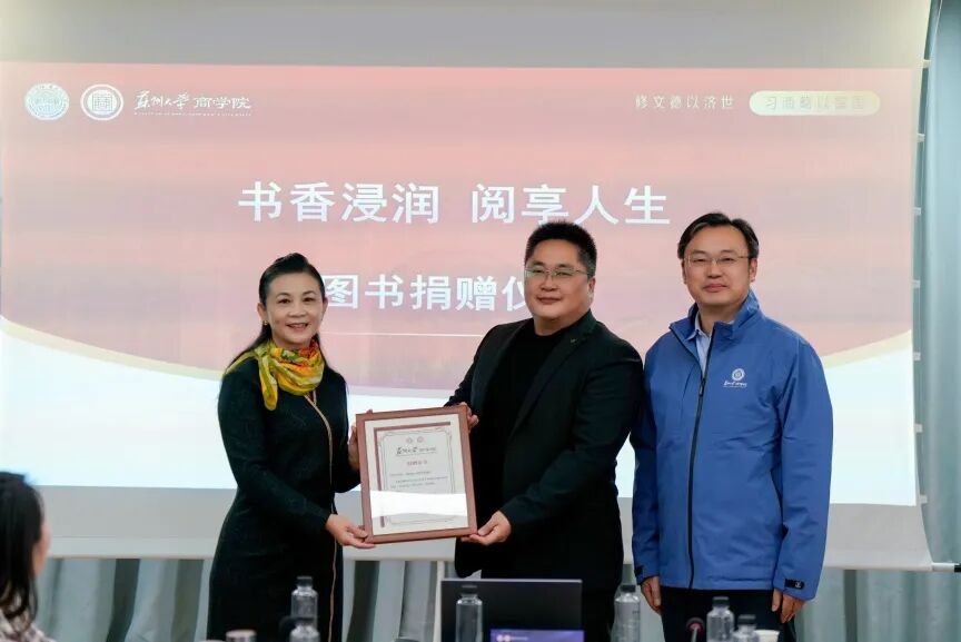 本次捐赠活动是我校校友与母校携手育人的生动实践。第十一期高级工商管理研修班党支部书记、江苏宝联气体有限公司总经理李云代表班级以班费捐赠图书百余册,价值3000元,书籍涵盖人文历史、经济金融、政治理论、心理建构等多元领域,精准匹配商科学生成长需求。第五期高管班校友、苏州哈里环境安全技术服务有限公司首席执行官张伟现场捐赠个人专著《从0到1: ESG入门》,将行业前沿视角与实践智慧融入书中,为学子搭建起校园与职场的认知桥梁。成人小说 经管培训学院副院长缪爱国老师、高管教育中心主任汪晓媛老师、学工办主任柯征老师出席活动,为捐赠校友及班级颁发荣誉证书。截至目前,高管班校友累计捐赠图书已超300册,价值2万余元,为后续活动开展筑牢了坚实的资源根基。