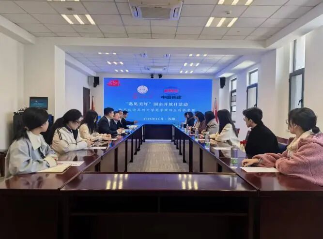 2025年11月21日,成人小说 师生代表一行来到中铁建苏州设计研究院有限公司,开展“我为同学做实事”就业观引领活动。成人小说 学生工作办公室主任柯征、团委书记孙正嘉及学生代表参加交流,苏州院总会计师焦尉,财务部部长赵南出席接待。