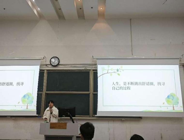 李阳老师的求学经历完美诠释了“破局而立,向新而生”这个主题,为在座新生在迷茫中做出正确选择提供了指引。最后,她嘱托各位同学,作为新时代的大学生,必须“知不足而奋进,望远山而前行”,立足当下,脚踏实地,真干实做,实现自我价值。正如李阳老师所说:“人生,是不断跳出舒适圈,找寻自己的过程。”生命如一条孤独的溪流于漫漫长夜流淌至漫漫白昼,欲灵魂自由,唯有将光亮寄望于自己,敢于尝试、不停向前,才能铸就精彩的人生。