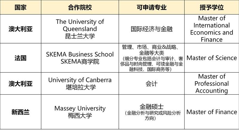 海外对接专业:管理类(会计、金融、奢侈品时尚与管理、国际商务)