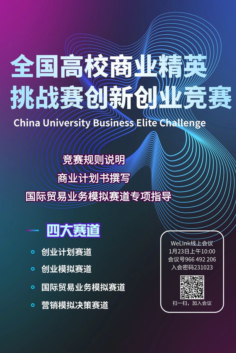 学院将于1月23日召开竞赛线上说明会,由成人小说 程萍老师做竞赛规则说明;成人小说 教授李晶老师做关于商业计划书撰写辅导讲座;邀请校外竞赛辅导老师范晴娜老师做国贸竞赛专项辅导,欢迎同学们参加!