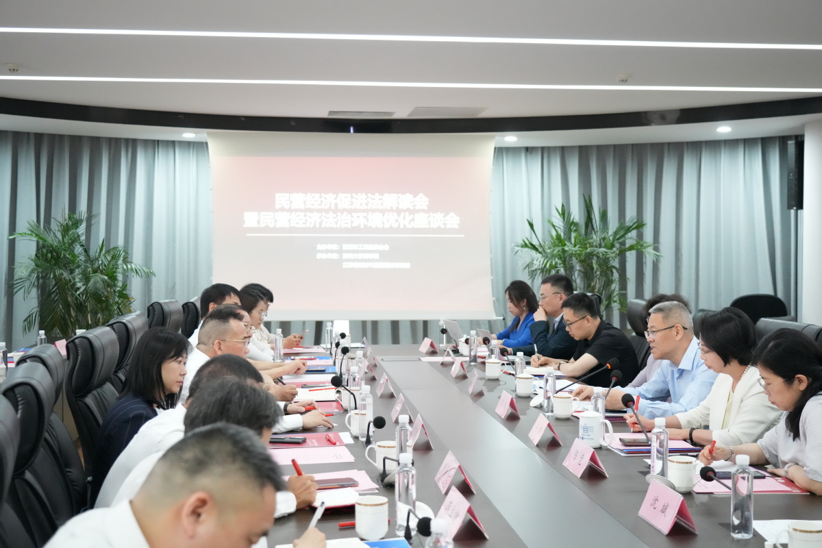 On May 15, 2025, ‘Interpretation of Private Economy Promotion Law and Symposium on Optimising the Rule of Law Environment for Private Economy’, hosted by Suzhou Federation of Industry and Commerce (SFIC) and co-organised by Soochow University Business School and Jiangsu New Era Private Economy Research Institute, was successfully held at Soochow University. Zhou Jun, Vice Chairman of Suzhou Political Consultative Conference and Chairman of Suzhou Federation of Industry and Commerce, Lv Jin, Vice Chairman of Suzhou Federation of Industry and Commerce, Feng Bo, Dean of Business School of Soochow University and President of Jiangsu New Era Private Economy Research Institute and other leaders, as well as Liu Shuhua, Vice President of Jiangsu New Era Private Economy Research Institute, Secretary of the Party Committee and Chairman of the Board of Directors of Suzhou Zhongshi Construction Group, vice president of Jiangsu New Era Private Economy Research Institute, and Liu Shuhua, Vice President of Suzhou Luzhiyao Science and Technology Co. Ltd, Zhou Rong, Chairman of Suzhou Luzhiyao Technology Co., Ltd, Zhang Xuan, Director of Jiangsu New Era Private Economic Research Institute, General Manager of Suzhou Southeast Aluminium Sheet & Strip Co., Ltd, Jiang Lijian, Director of Jiangsu New Era Private Economic Research Institute, President of Suzhou Huacheng Group Co.