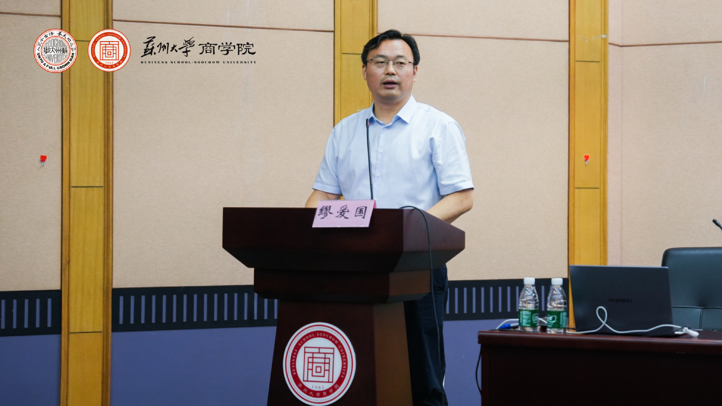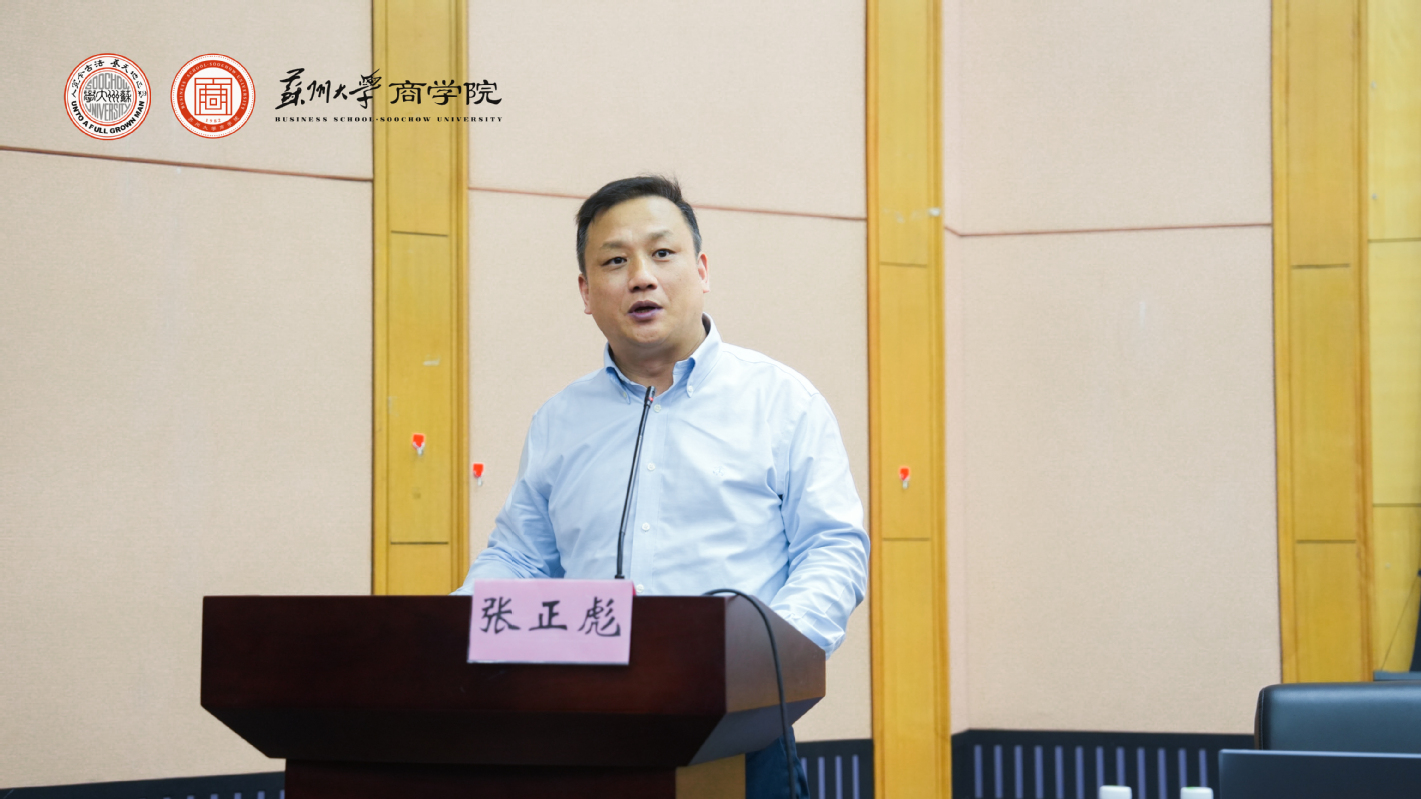 In the afternoon of 15 June, the signing ceremony of the strategic cooperation of executive education alumni of our Business School was held in the Academic Lecture Hall on the first floor of the Finance and Economics Science Hall. Zhang Zhengbiao, Standing Committee of the Party Committee and Vice President of Soochow University, Feng Bo, Dean of the Business School, Miao Aiguo, Vice Dean of the School of Economics and Management Training, Wang Jin, Chairman of Jiangsu Bocai Zongchuang Science and Technology Industrial Park Group, Bao Xuekui, Chairman of Changshu Huarui Jiarong Construction Engineering Company Limited and nearly 80 executive class participants attended the signing ceremony. The signing ceremony was presided over by Miao Aiguo, deputy dean of the Business School's School of Economics and Management Training.
