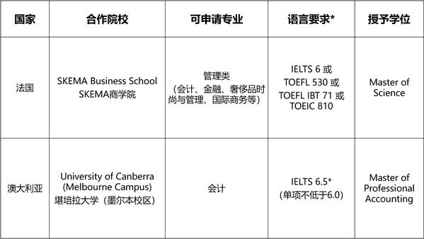 *申请签证时需要满足对方国家签证的语言要求,外方合作院校可为项目学生提供语言过渡课程。
