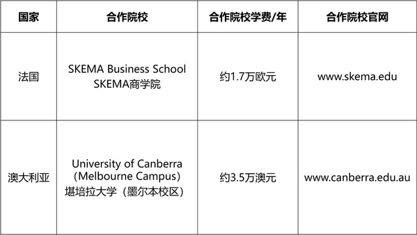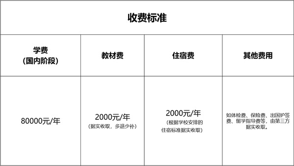 第二学年:国外阶段 – 合作院校,第二年学费请参考各合作院校官网。