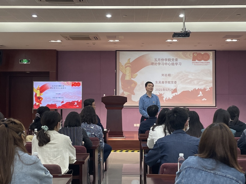 在参观完展厅后,党员们来到苏州革命博物馆报告厅,刘志明书记主持党委中心组学习,由朱江主任为全体党员做题为“中共党史·苏州记忆”的专题宣讲,他围绕“苏州早期党组织的创建”、“抗战中的苏州”、“苏州的解放”三个专题,通过讲解五卅路的由来、苏州乐益女中、苏州独立支部及其三任书记、雨花英烈、《沙家浜》、太湖游击队、苏州革命博物馆馆藏文物等苏州当地众多党史人物事迹、遗址遗迹、文物故事等,脉络清晰、内容丰富的展现了苏州地方党史,特别提到了我校校友丁香烈士的故事,使参会人员对苏州地方党史有了更为直观、深刻的了解。刘书记在总结中指出,各党支部要进一步按照上级要求开展党史学习教育,要特别注重对苏州地方党史的学习。