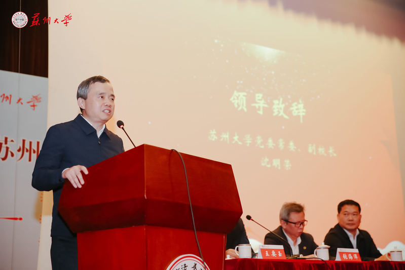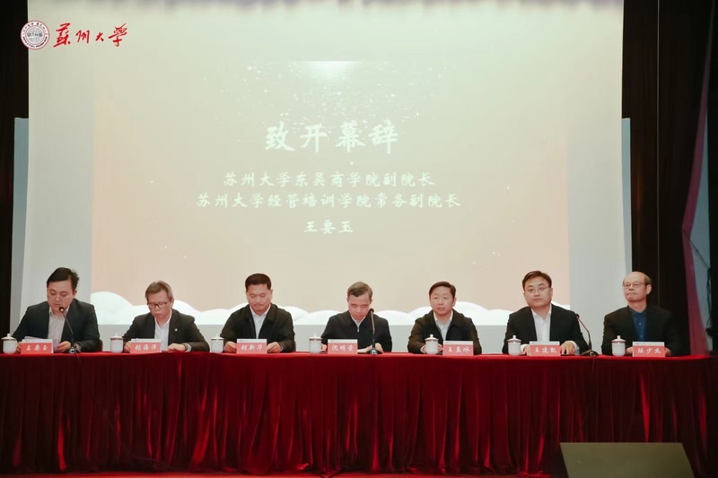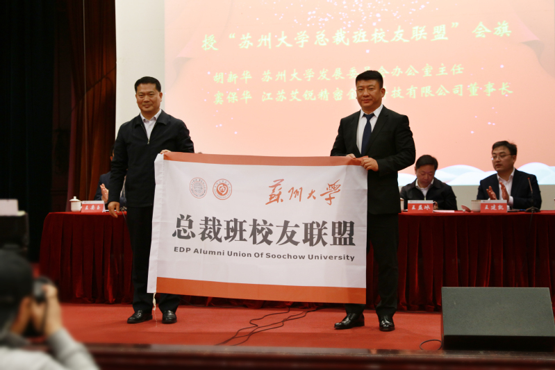 苏州大学发展委员会办公室主任胡新华和校友联盟理事会轮值理事长窦保华共同为“成人小说 总裁班校友联盟”揭牌。