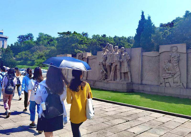 在烈士纪念群像前仔细感受不同身份的革命者,工人,教师,农民,红军在“全世界无产者,联合起来!”口号下的大无畏精神,也体现了坚持群众路线,是我们党取得革命、建设和改革伟大胜利的根本力量。