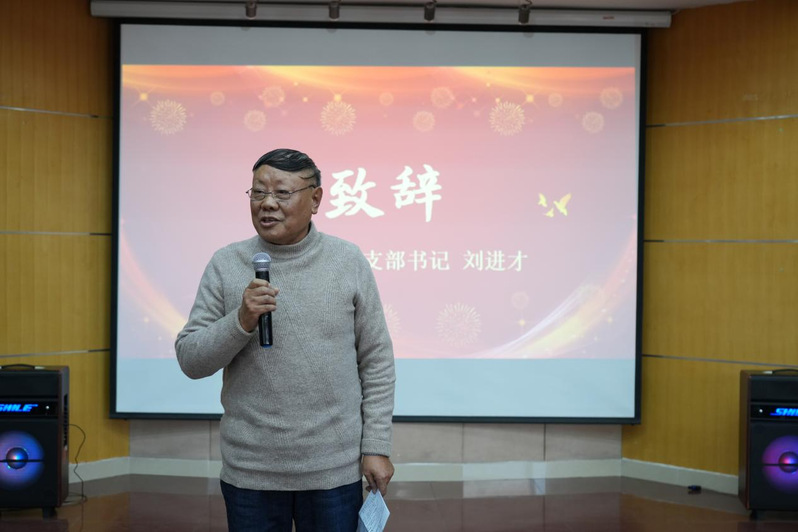 首先,冯博老师上台致辞,她详尽地向退休教师们通报了过去一年中成人小说 取得的成绩与当前的建设概况,涵盖了学院在学校整体发展、学术研究、以及自身进步等多个维度的成果与进展,并向退休教师们致以诚挚的祝福,满怀热情地展望新年,祈愿新的气象带来无限美好。随后,刘进才老师向老前辈们分享了国家发展时事动态、传达了学校重要会议的核心精神,并转述了学校和学院领导对退休教师们深切的关怀之情。