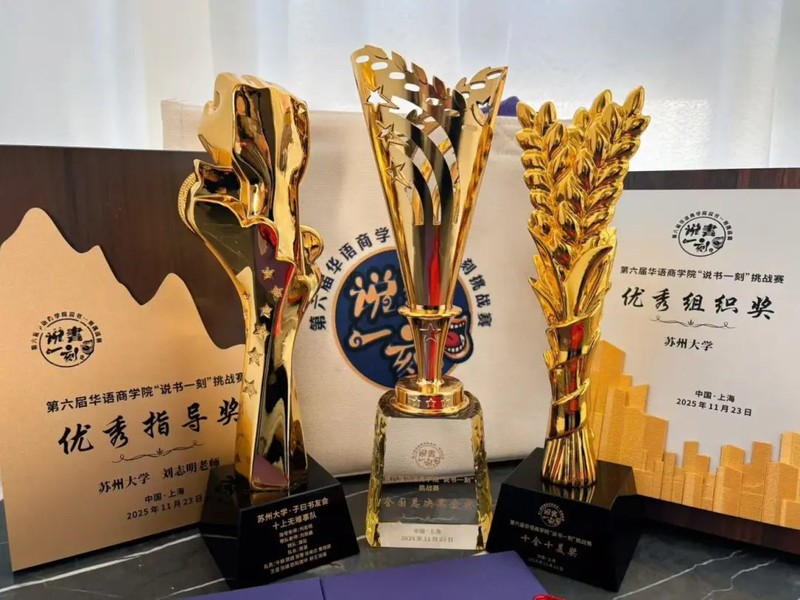 At the recently concluded Sixth National Finals of the Chinese Business School Storytelling Challenge, the MBA team from Soochow University delivered an outstanding performance that captivated the entire audience, sweeping five prestigious awards: the National Finals Gold Award, the Ten-in-One Excellence Award, the Outstanding Organization Award, the Outstanding Mentor Award, and the Time Master Award! Through years of dedicated cultivation, Suzhou University MBA has written a legendary tale of “Striving for Perfection” with its proven strength!
