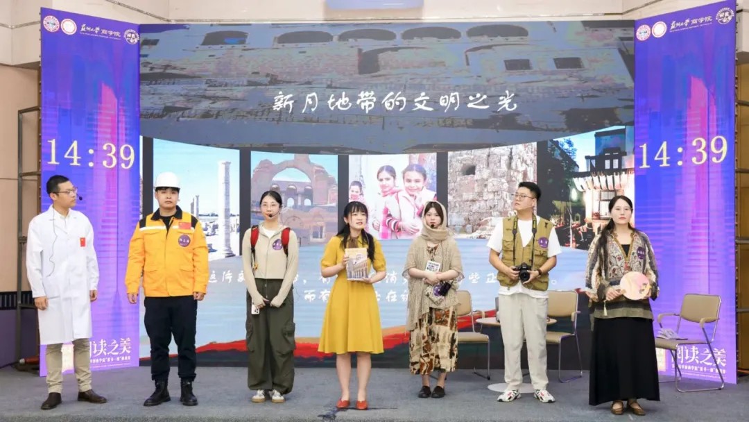 The Su General Storytelling Team from Soochow University entered the book “The Light of Civilization in the Crescent”. Architecture is a landmark and an inscription of civilization. When splendor and glory, decay and destruction have all become history, we can still read the rich legacy of civilization through the establishment and form of architecture. The elaborate stage production by the storytelling team, as if the Wumayyad Mosque in Damascus, Syria, is right in front of our eyes, with its magnificent structure and splendid gilt mosaic decoration witnessing the glory of Syria's history, and mapping out the country's long history and religious and cultural mingling.